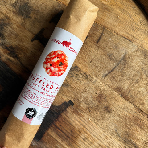 Inspired by the black truffle recipes of northern Italy's, this pork salame is crafted by Red Bear, a women-owned business specializing in Berkshire pork charcuterie.