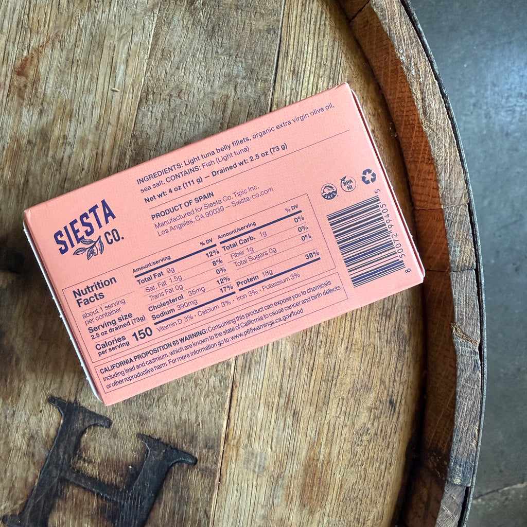 Ingredients: light tuna belly fillets, organic extra virgin olive oil, sea salt