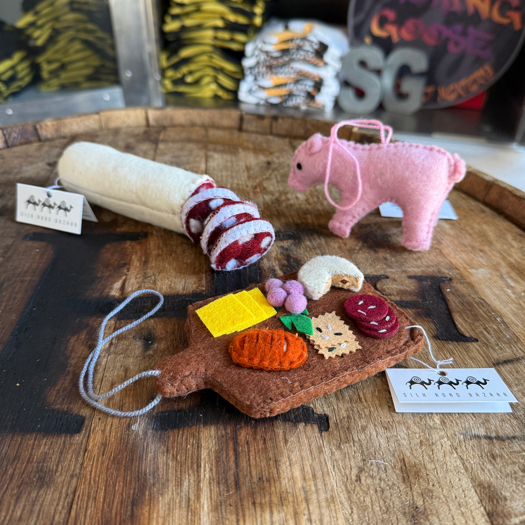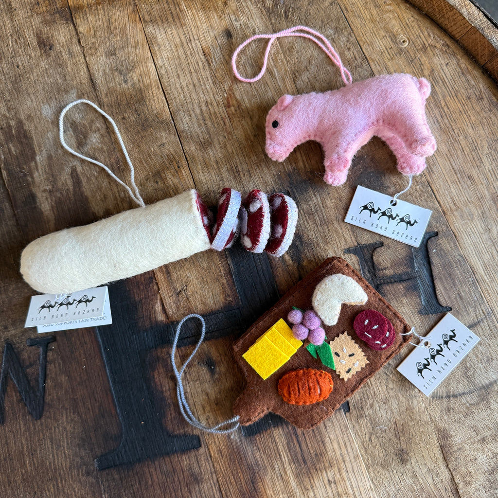 Handmade felt ornaments available in a variety of shapes including
