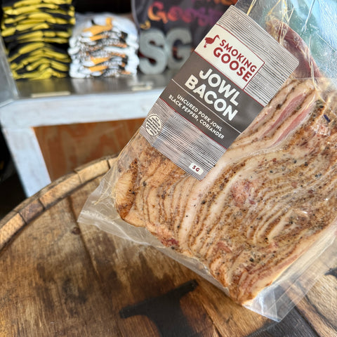 Ingredients: Pork Jowl, Salt, Brown Sugar, Cane Sugar, Spices (Black Pepper, Coriander), Maple Syrup, Celery Powder, Cherry Powder