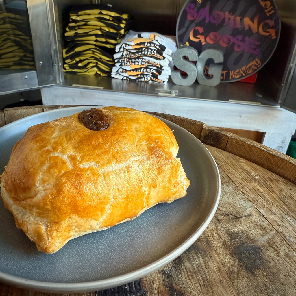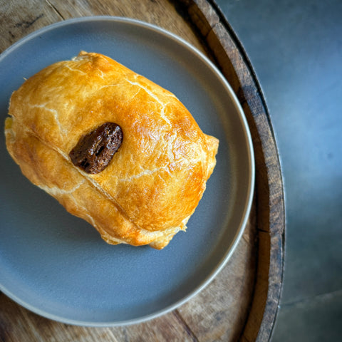 We stuffed rich, triple-cream Trillium cheese with a slow stewed mixture of our Salame Cotto and figs, local apples, currants, and chopped Marcona almonds. Enveloped in delicate puff pastry, this limited-release stuffed brie en croûte is fully assembled and ready to simply bake and serve.
