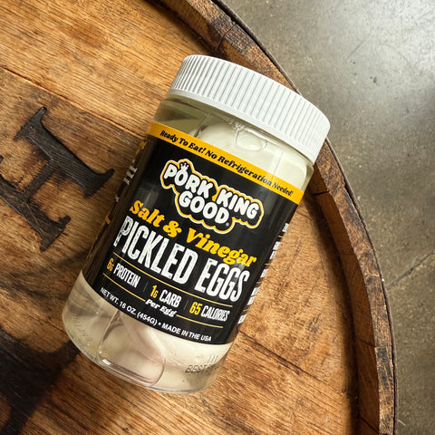 Pork King Good’s boiled eggs perfectly pickled under vinegar and spices.
