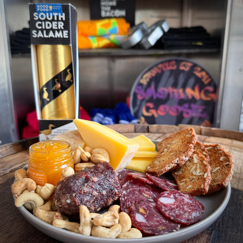 - Our Good Food Award winning South Cider Salame released just once a year! Goose salame with a touch of pork for texture featuring Indiana persimmons and hard apple cider from Arvin’s Acres in Delphi, Indiana. 5oz link ready to slice. Refrigerate after slicing into it.