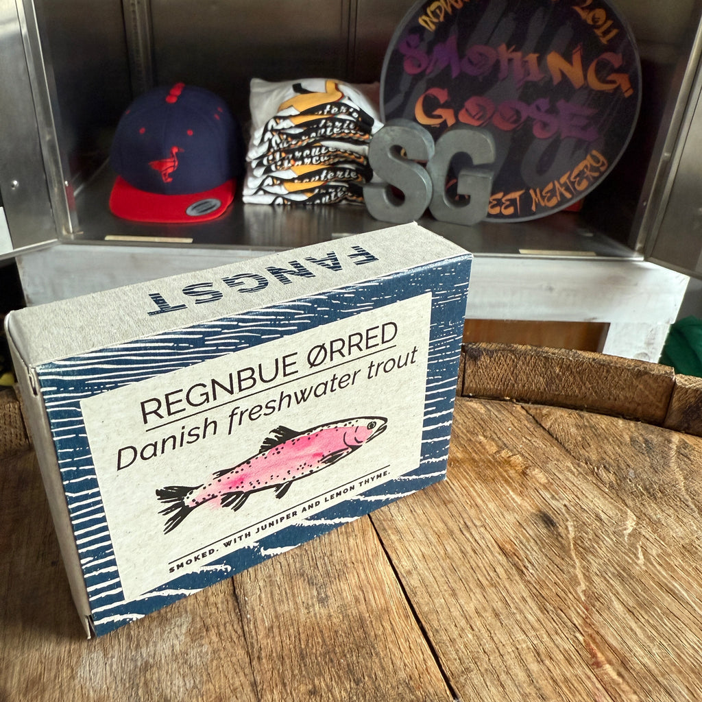 Ingredients: smoked trout, cold-pressed rapeseed oil, salt, lemon thyme, juniper