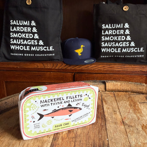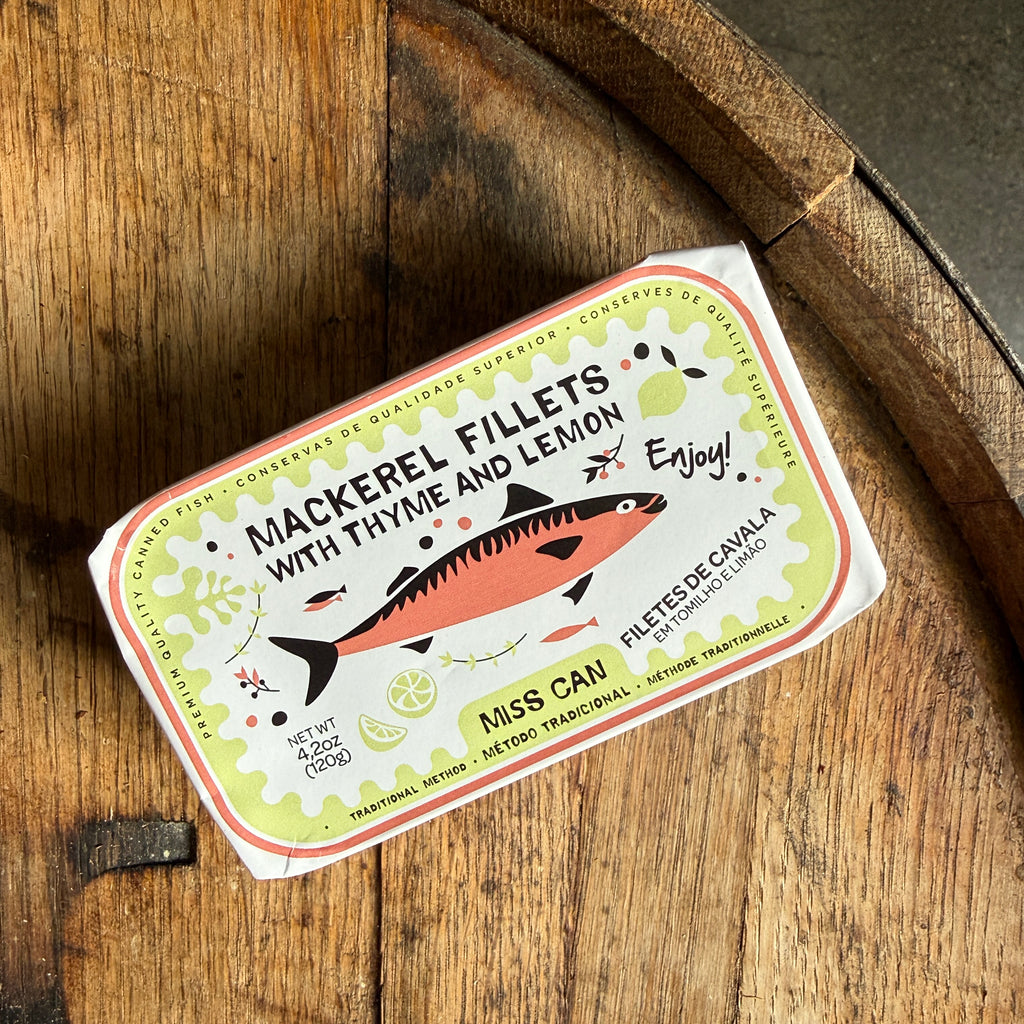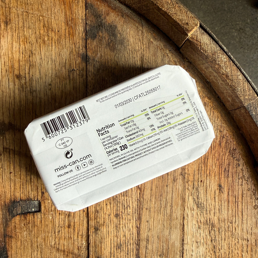 Ingredients: mackerel, olive oil, lemon, thyme, salt.