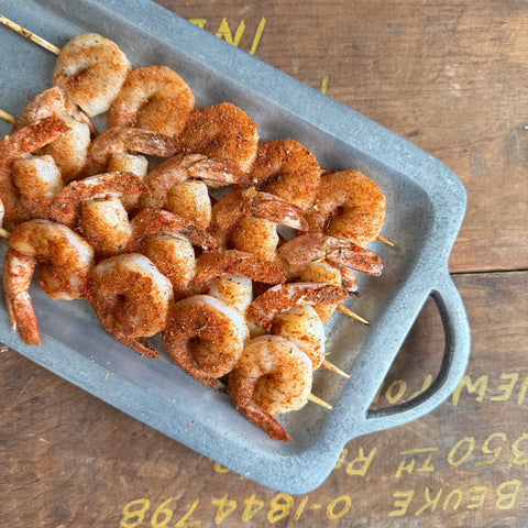Tender, flavorful, and basted with butter + blackened seasoning, these fully-cooked shrimp skewers are fully cooked and ready to eat or simple to heat and serve hot.