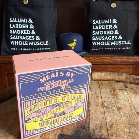 Each Spanish onion is stuffed with tender Bonito tuna for a savory filling that’s complemented by a rich medley of tomatoes, aromatic garlic, and a splash of white wine, all enhanced by the natural richness of organic olive oil.