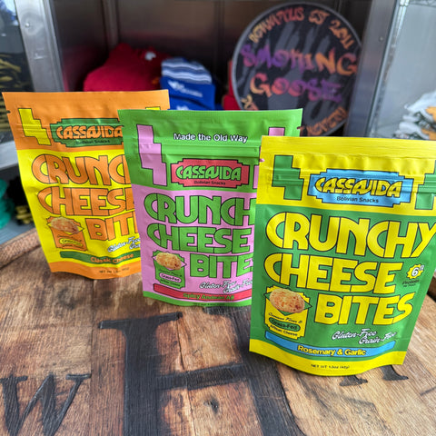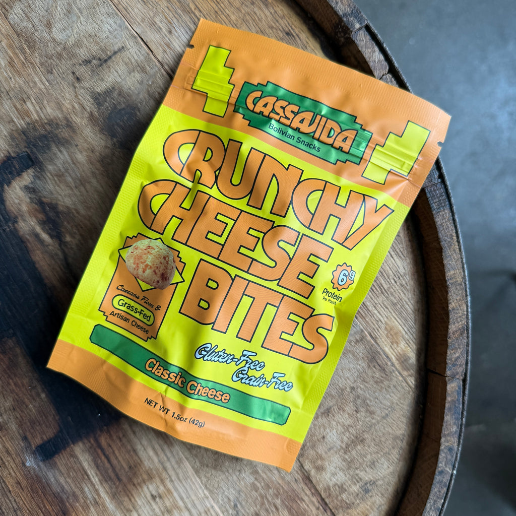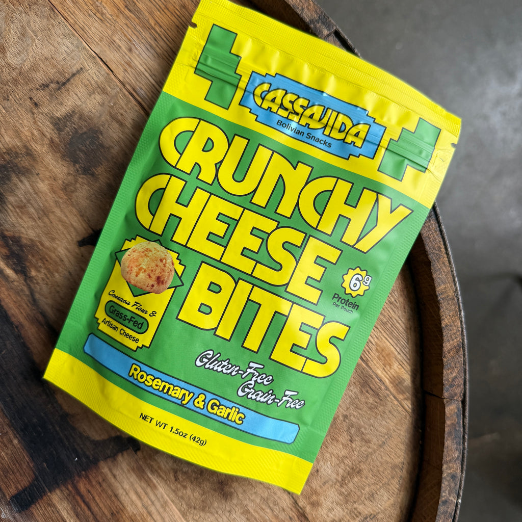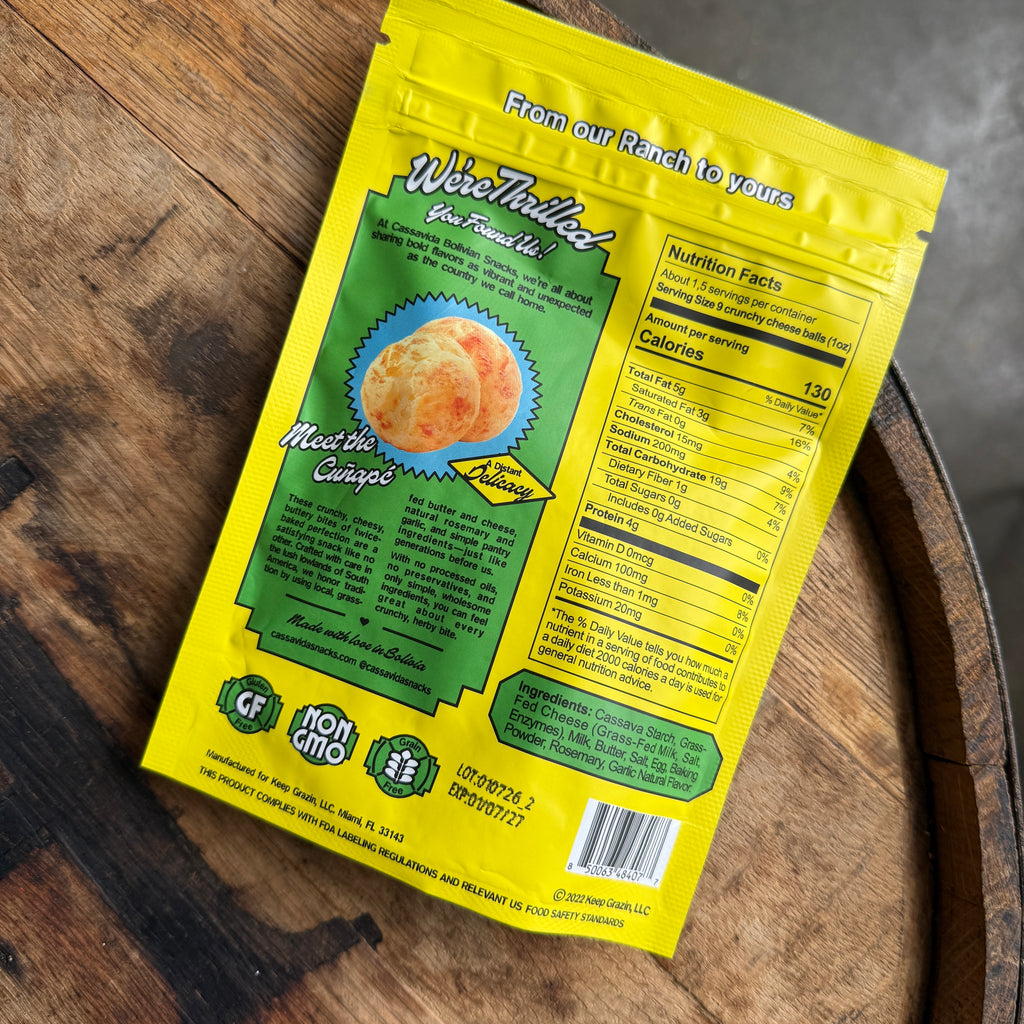 Inspired by traditional Bolivian cuñapés, these twice-baked, gluten-free, grain-free cheese & cassava snacks deliver a crispy, cheesy, buttery crunch.