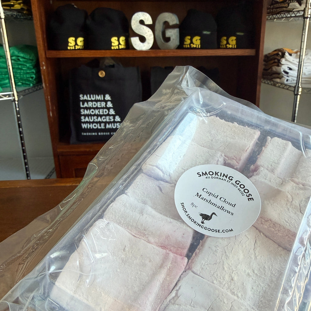 A swirled blend of strawberry and smoked Ube syrup infuses these house-made marshmallows.