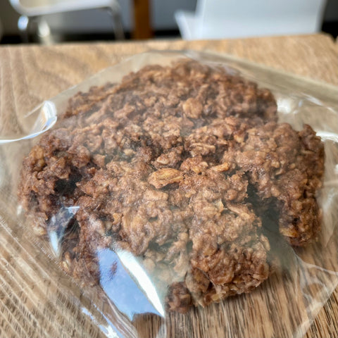 Ingredients: oats, chocolate chips, Indiana maple syrup, eggs, water, coconut oil, granulated sugar, flax, vanilla, salt, leavening agent