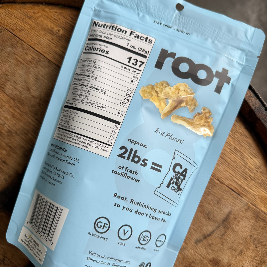 Cauliflower: Cauliflower, Avocado Oil, Sea Salt, Tapioca Starch