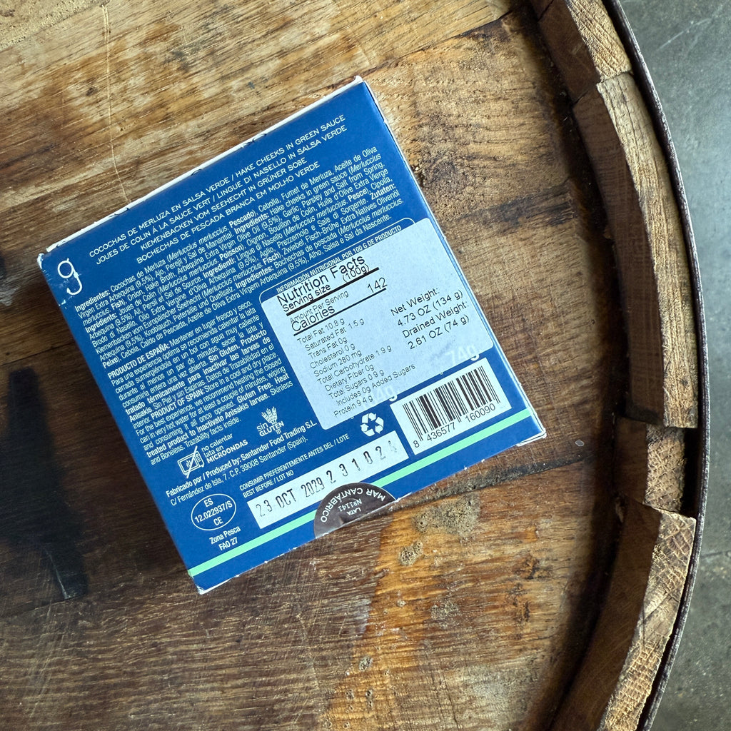Sourced from the pristine waters of the Bay of Biscay, these delicate and sweet hake cheeks are bathed in Spain's traditional green sauce delivering an authentically historical taste of Northern Spain