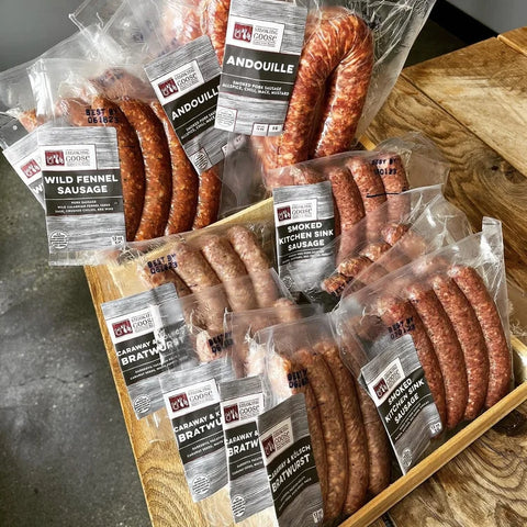 Gentle sear will warm it through and add caramelized flavors. Pair with Cherry Fig Mostarda and aged goats’ milk cheeses. In a bun, top with our our house-made Bavarian Mustard and grilled onions + fennel. Toss slices with lentils, carrots, and balsamic cipollini onions